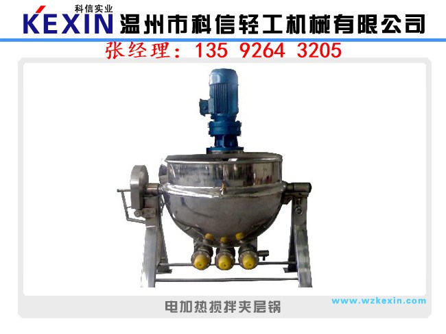 夾層鍋又名蒸汽鍋、蒸煮鍋、夾層蒸汽鍋。通常由鍋體和支腳組成。鍋體是由內(nèi)外球形鍋體組成的雙層結(jié)構(gòu)形式,中間夾層通入蒸汽加熱。有固定式、可傾式、攪拌式等樣式。夾層鍋具有受熱面積大、熱效率高、加熱均勻、液料沸騰時(shí)間短、加熱溫度容易控制、外型美觀、安裝容易、操作方便、安全可靠等特點(diǎn)。夾層鍋廣泛應(yīng)用于各類食品的加工,也可用于大型餐廳或食堂熬湯、燒菜、燉肉、熬粥等,是食品加工提高質(zhì)量、縮短時(shí)間、改善勞動(dòng)條件的良好設(shè)備。