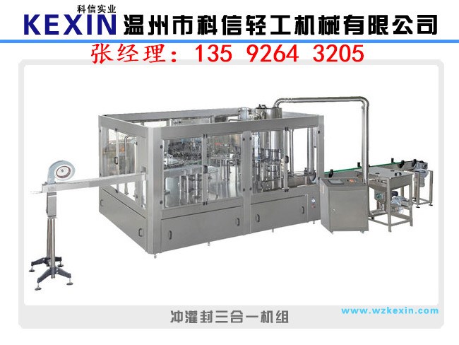 三合一機(jī)集沖洗、灌裝、封蓋于一體,是以國外先進(jìn)技術(shù)為基礎(chǔ),根據(jù)茶、果汁、等飲品的灌裝工藝要求研制而成的。灌裝溫度一般在82-85度左右的液體。