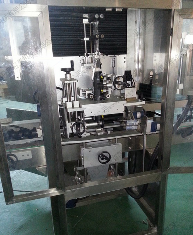 當(dāng)推瓶電眼發(fā)現(xiàn)有瓶子過來并認(rèn)為有連續(xù)生產(chǎn)之必要的時(shí),進(jìn)瓶螺桿開始運(yùn)作推瓶(進(jìn)瓶螺桿的作用就是將不等距而來的瓶子從新等距 等初速度分瓶),瓶子進(jìn)入套標(biāo)系統(tǒng)的核心單元,當(dāng)套標(biāo)電眼感應(yīng)到有瓶子過來,馬上將信息傳輸給控制中心 PLC ,并通過 PLC 依次、連續(xù)下達(dá) 4 個(gè)指令:送標(biāo)、定位、切標(biāo)、射標(biāo),當(dāng)射標(biāo)結(jié)束,一個(gè)瓶子的套標(biāo)過程完成,之后進(jìn)入標(biāo)簽整理、收縮單元。
